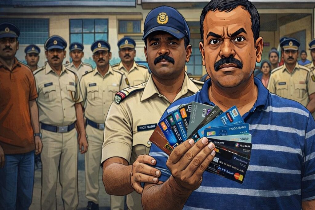 तलाशी के दौरान आरोपी के पास से विभिन्न बैंकों के ७१ डेबिट कार्ड बरामद किए गए। आगे की जांच में अपराध क्रमांक 111/2026 और 112/2026 भी उजागर हुए। तीनों मामले धारा 379(4) भारतीय दंड संहिता और धारा 66(D) सूचना प्रौद्योगिकी अधिनियम के अंतर्गत दर्ज हैं।